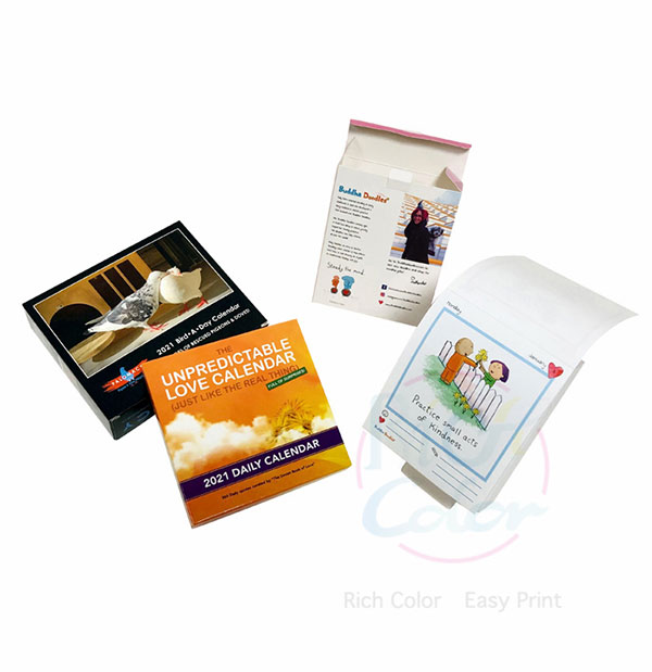 Koledar s trganjem 365 dni na dan, z našimi standardnimi stojali za koledarje boste prihranili denar pri stroških kalupa, če tiskate koledar s trganjem 365 dni na dan s tiskarno RichColor Printing Factory, zajamčena kakovost.